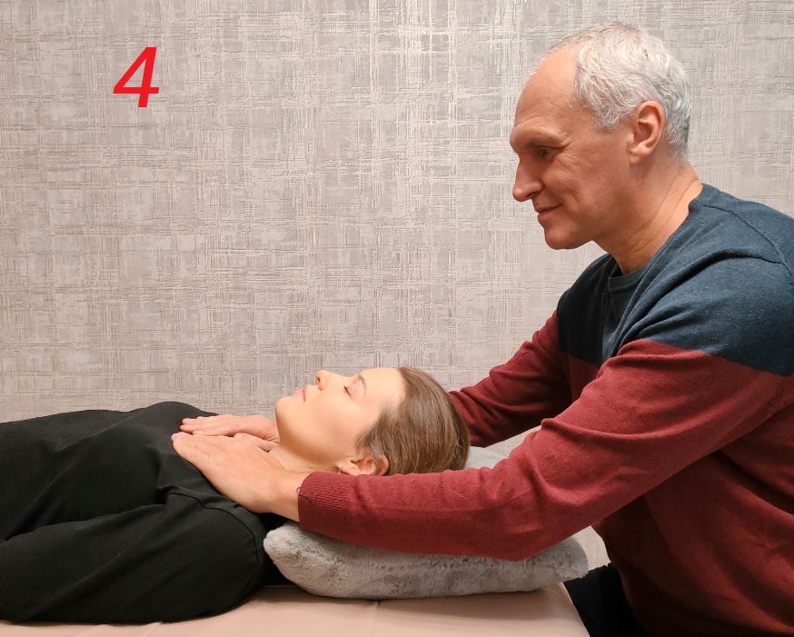 на теле пациента в определенных позициях. На каждой позиции руки держатся в