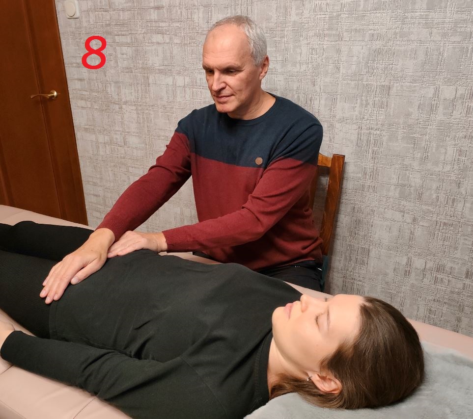 Стандартный сеанс Рейки включает восемь позиций на передней половине тела и